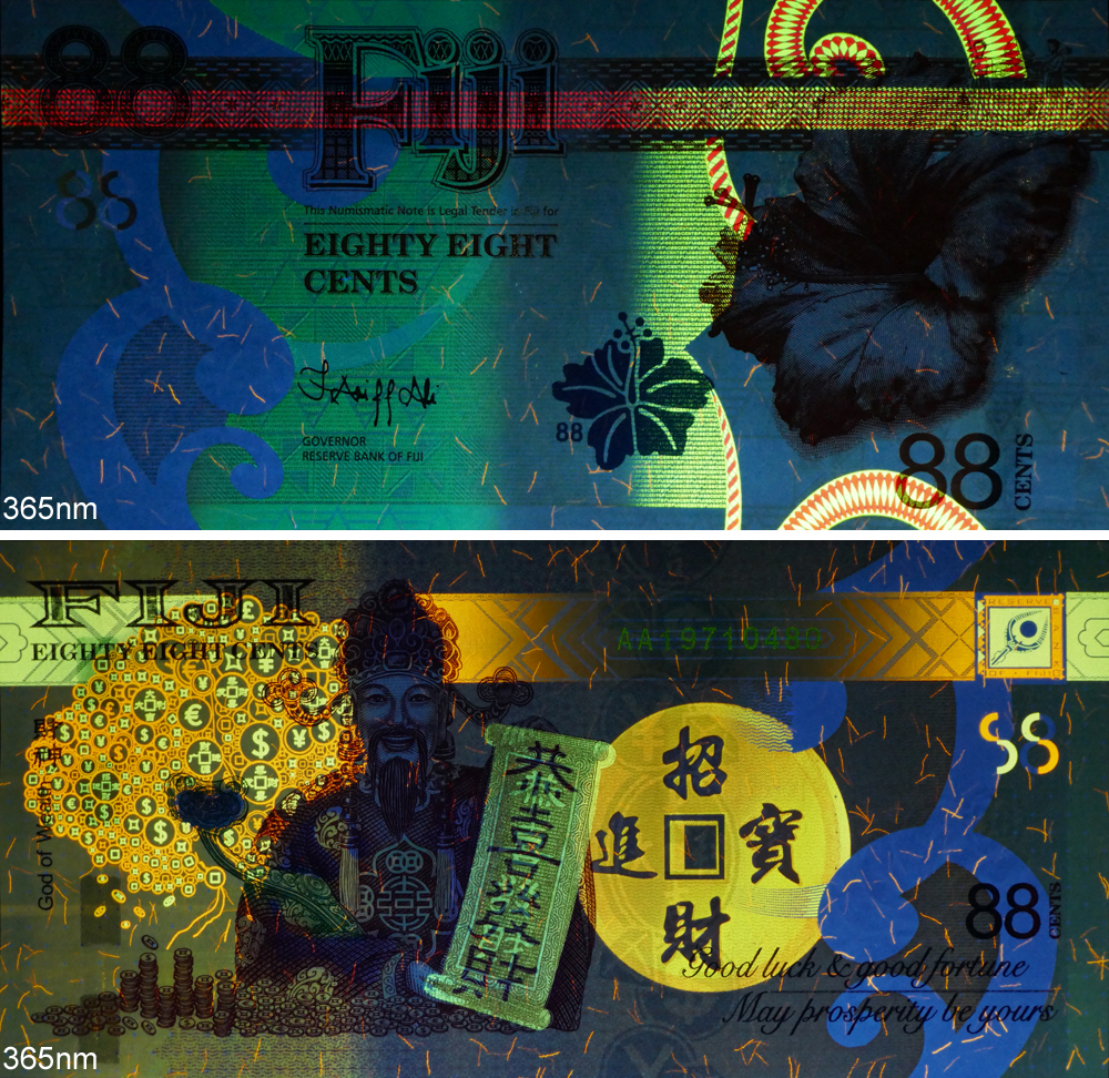 This is one of the topics I am intensely interested in: colour changes or intensity changes when comparing banknotes under UVA (365nm) or UVC (254nm).