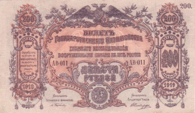 200 и 1000 руб. 1919 г. ГК ВСЮР