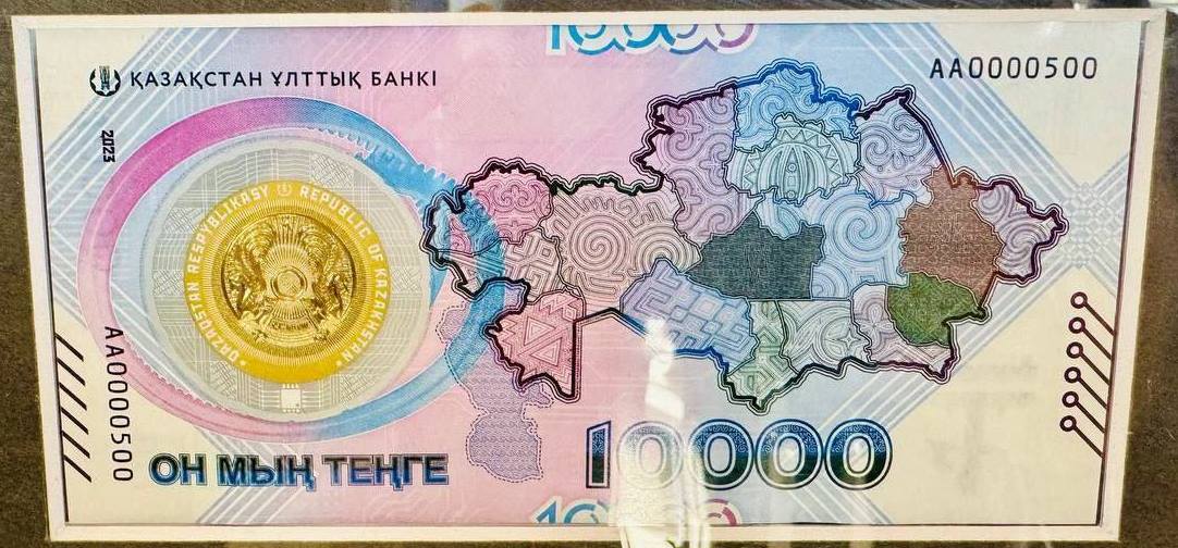 Национальный Банк Казахстана с 15 ноября 2023 года выпускает в обращение юбилейную банкноту номиналом 10 000 тенге, посвященную 30-летию введения в обращение национальной валюты Республики Казахстан.