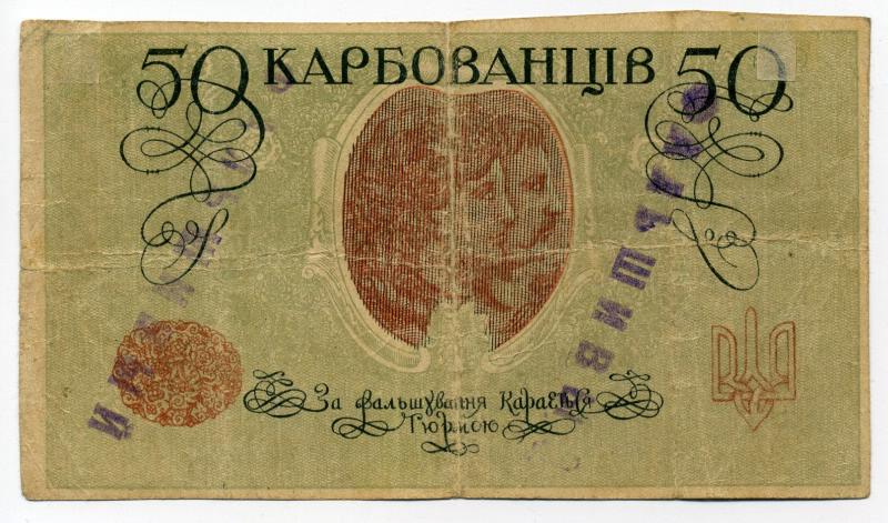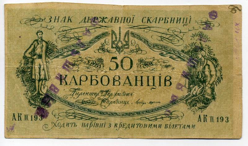 Знаки Государственного казначейства УНР номиналом 25 и 50 карбованцев