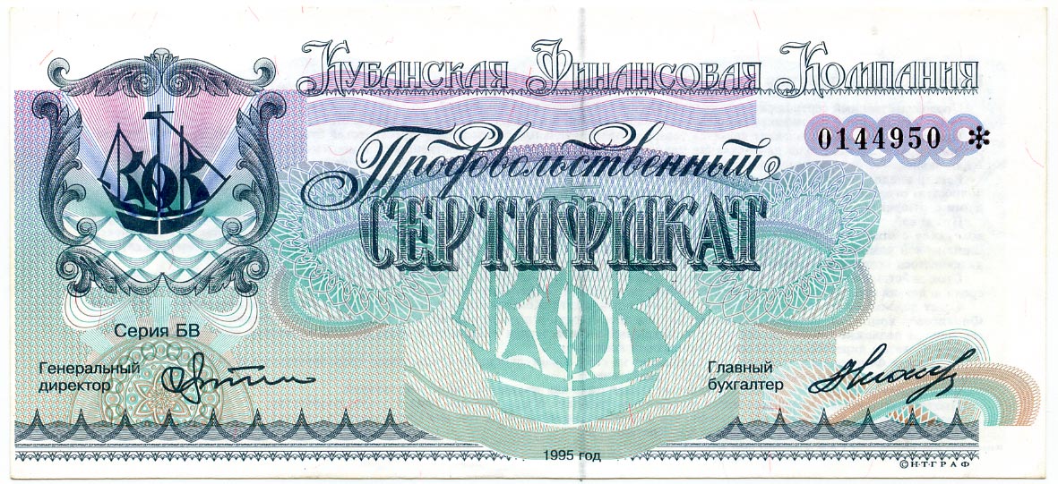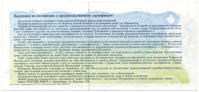 Продовольственный сертификат Кубанская Финансовая Компания