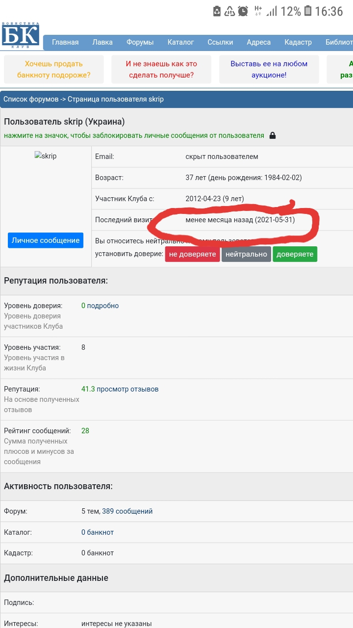 Например, пользователь skrip писал в теме 9.06, а в то же время на его странице отбражено,что его последний визит на сайт был 31.05...