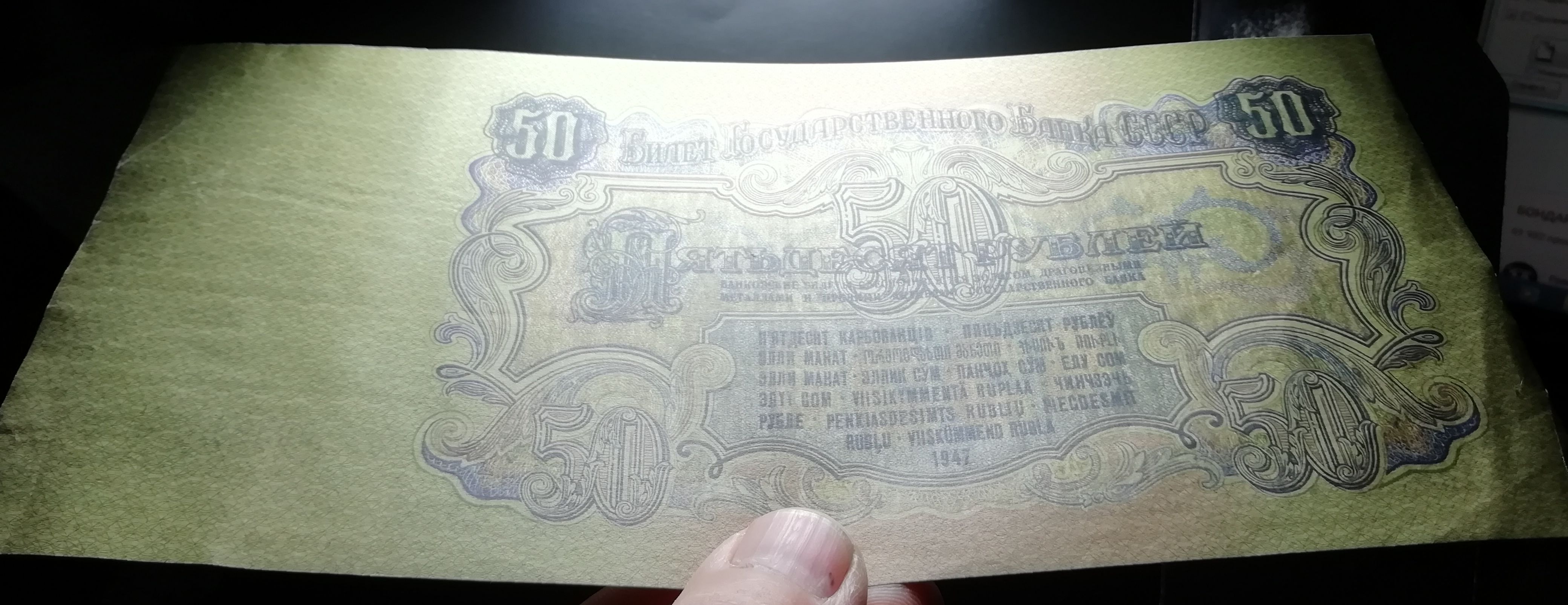 50 рублей 1947 / Без номера / Бумага верже
