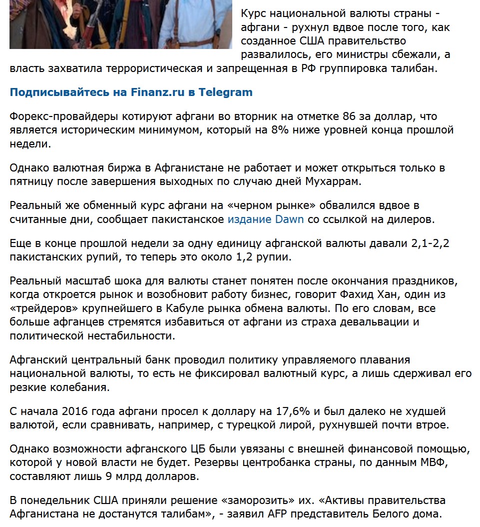 Крепкая видимо валюта, эти афгани, раз уж на фоне ТАКИХ событий всего 1,7% теряет!!!