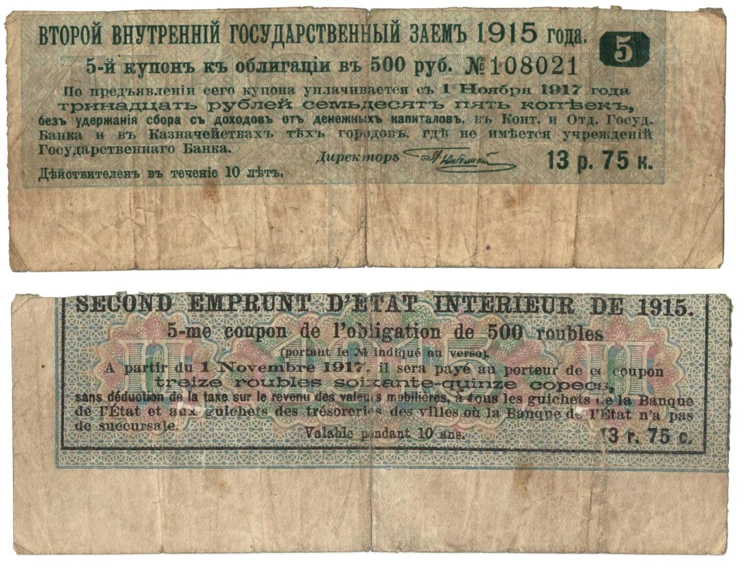 Просьба подсказать с оценкой ходячего купона второго государственного займа 1915 года. Спасибо.