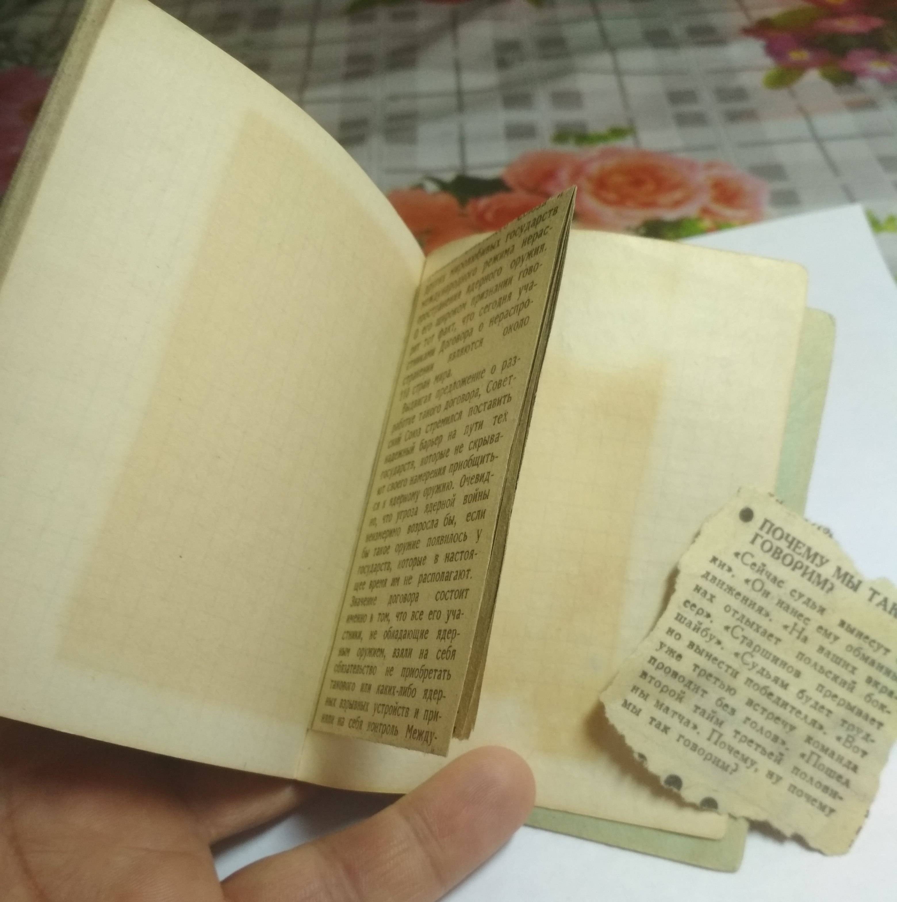Вот как выглядят страницы записной книжки после более чем сорока лет пребывания вместе с газетной бумагой.