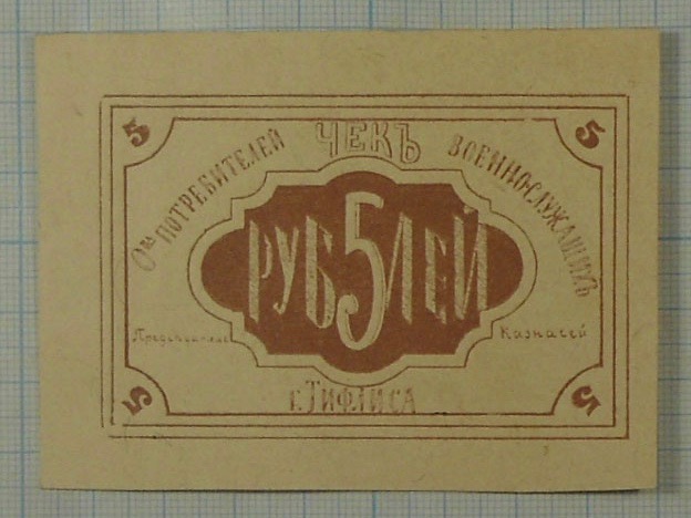 Общество потребителей планировало выпустить чеки в 1, 3 и 5 рублей, предположительно в 1919 году. Чеки были отпечатаны, но в обращение не поступили. По сути это бланки, поэтому сохран и должен быть приличный.