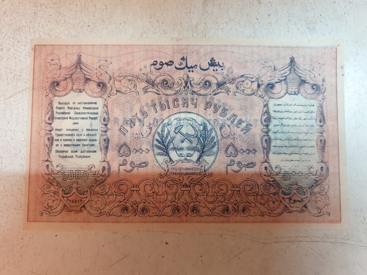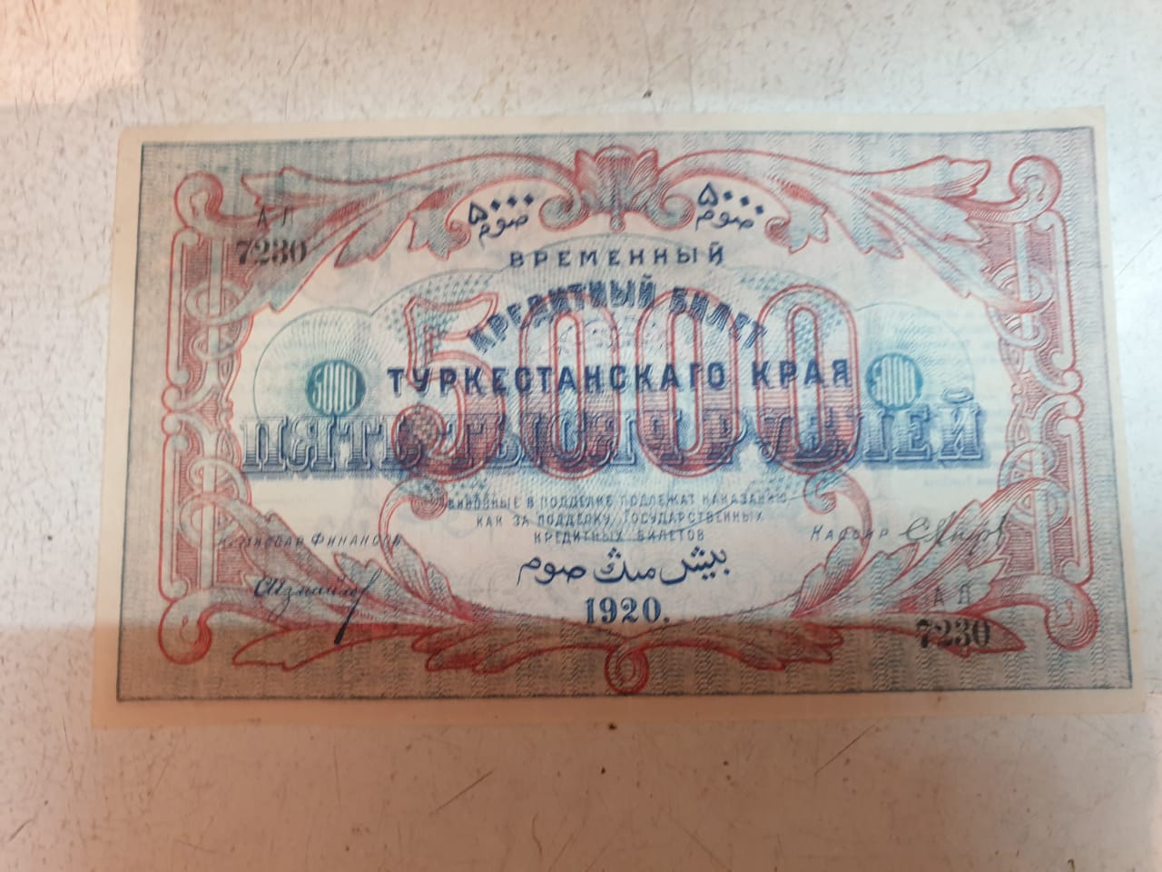 Временный кредитный билет Туркестан края 5000 рублей 1920 го