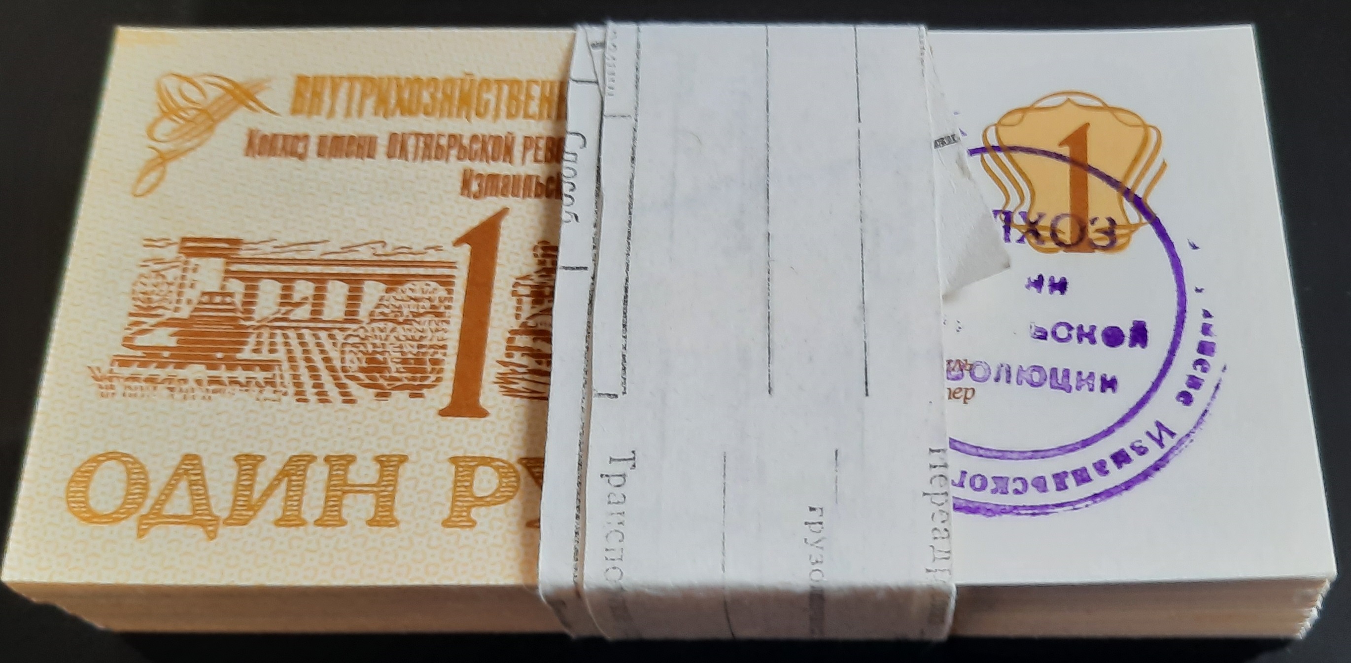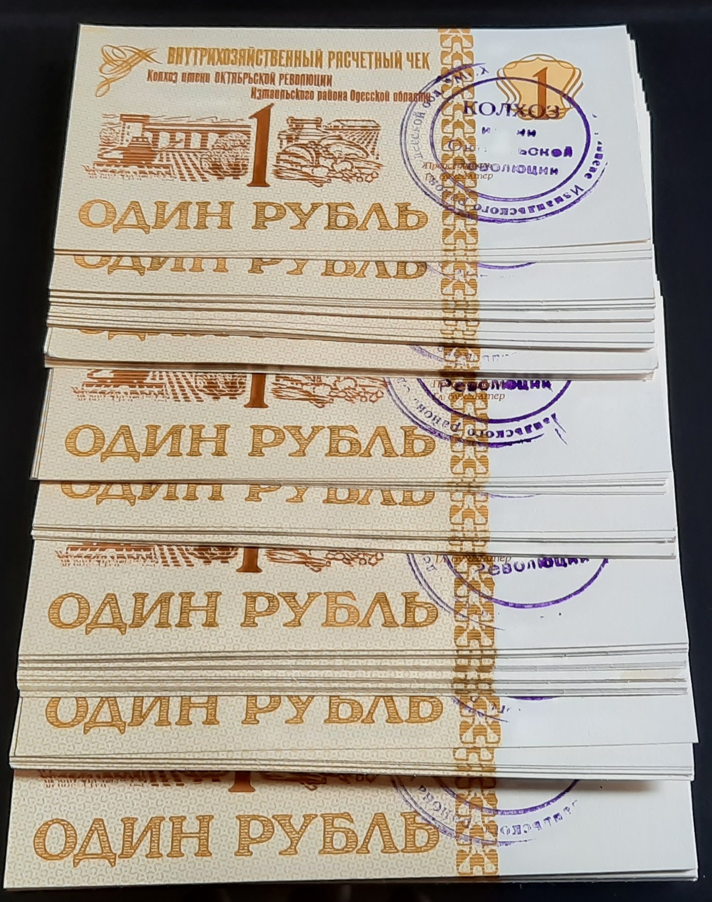 Корешок (100 шт.) 1 рубль внутрихозяйственный расчетный чек колхоз Октябрьской Революции Измаильского района Одесской области