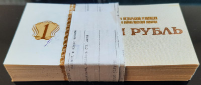 Корешок (100 шт.) 1 рубль внутрихозяйственный расчетный чек