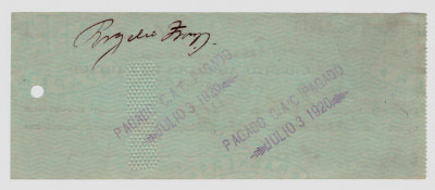 Банковский чек 1920 год. Коста Рика