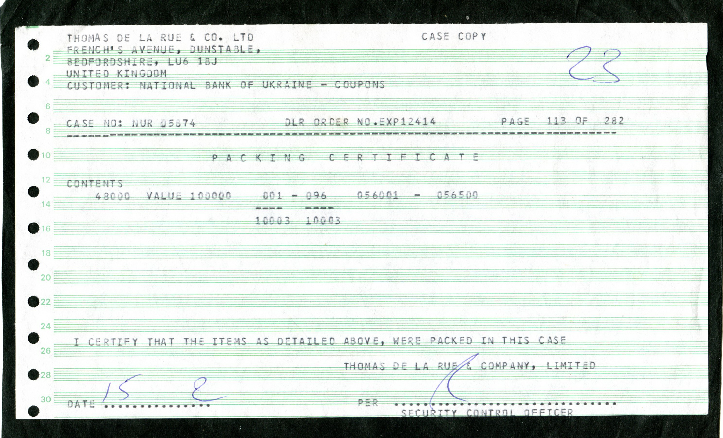 Из него видно, что 100000 купонов 1993 года серии 10003 с числителями от 1 до 96 печатались по 500 штук. Итого 48000 шт в отправке.
