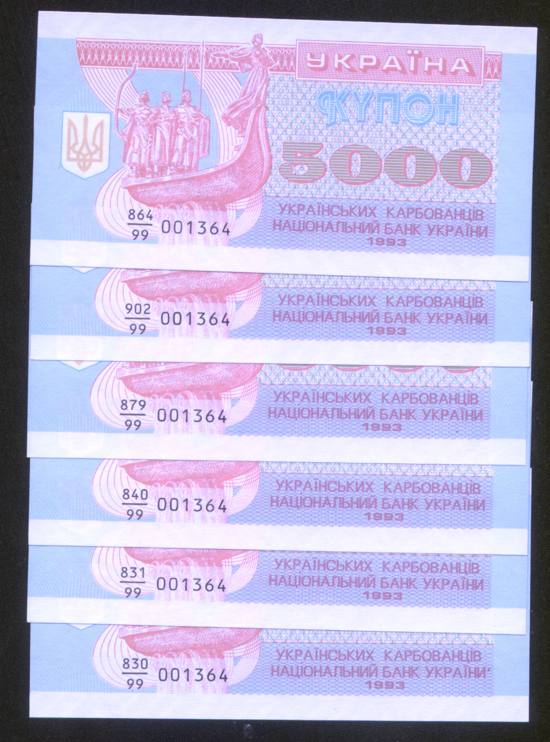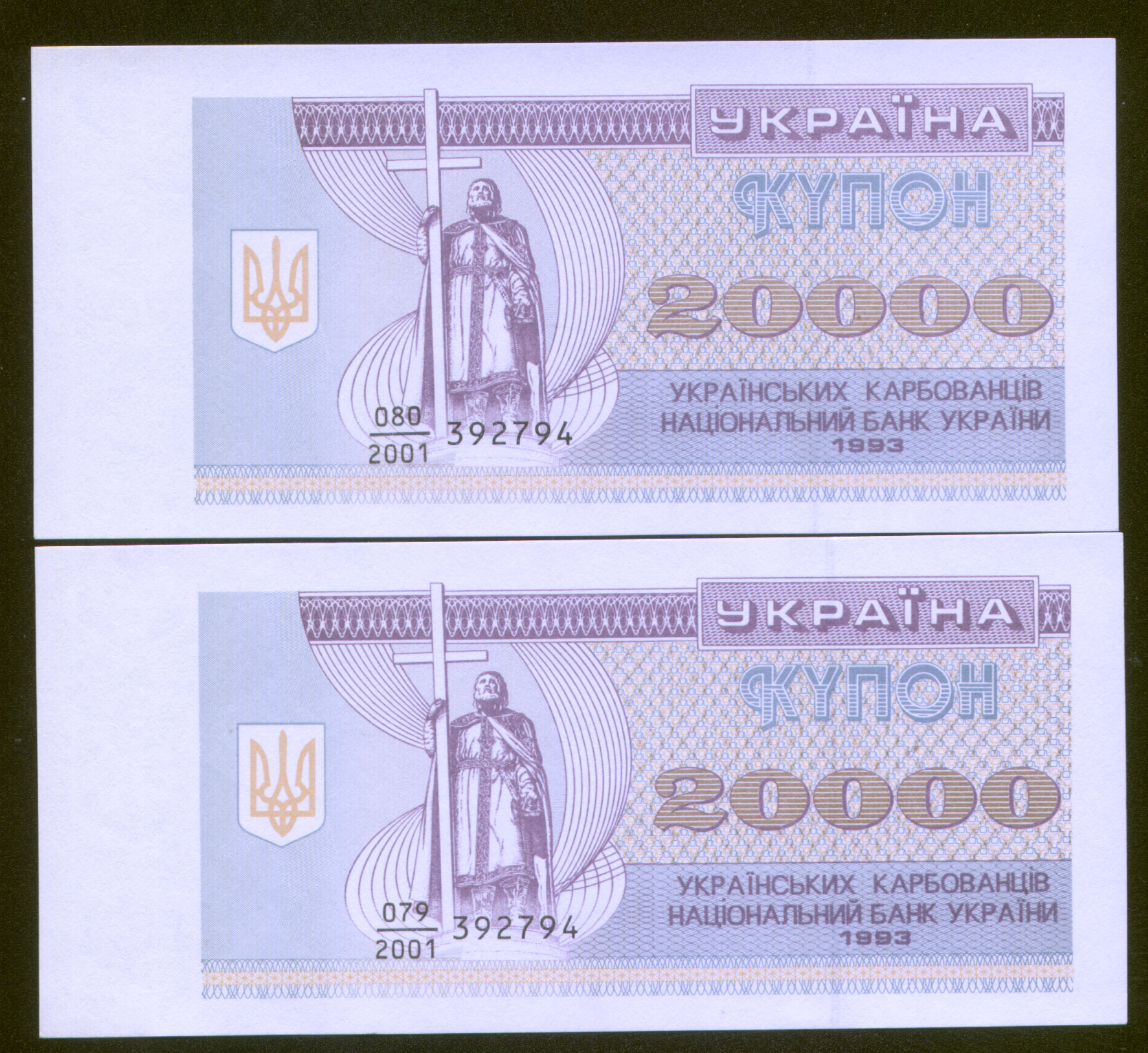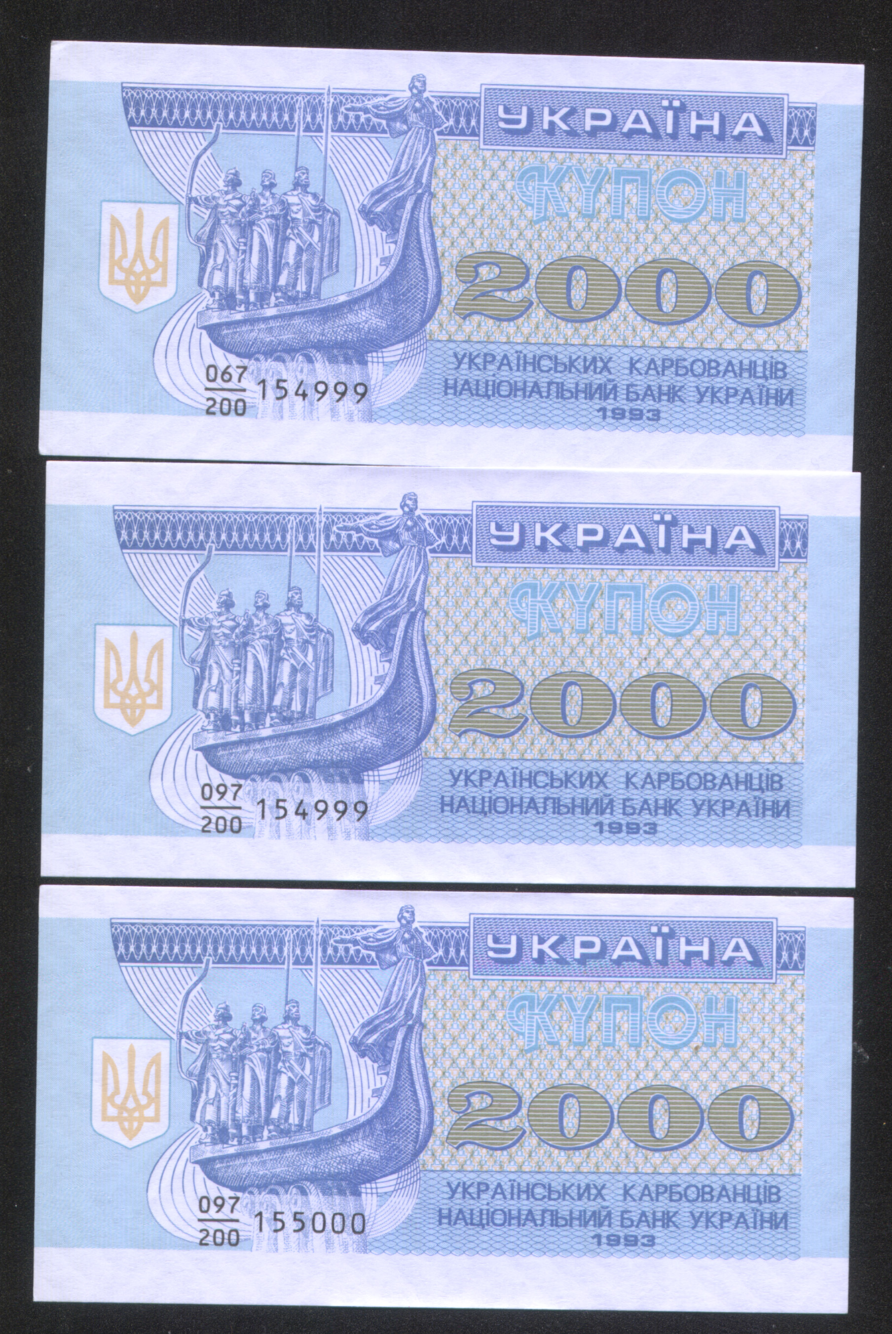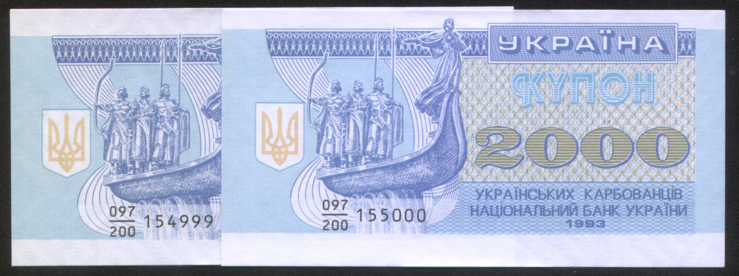 Во-первых, как уже отмечал уважаемый Bn нужно отличать купоны 100, 200, 500 и 1000 карбованцев образца 1992 года, купоны 2000 и 5000 украинских карбованцев образца 1993 года и купоны 10 000, 20 000, 50 000, 100 000 украинских карбованцев образца 1993 года + английский выпуск купонов 200 000 украинских карбованцев образца 1994 года. Их нумерация как он справедливо утверждает, имеет свои особенности.