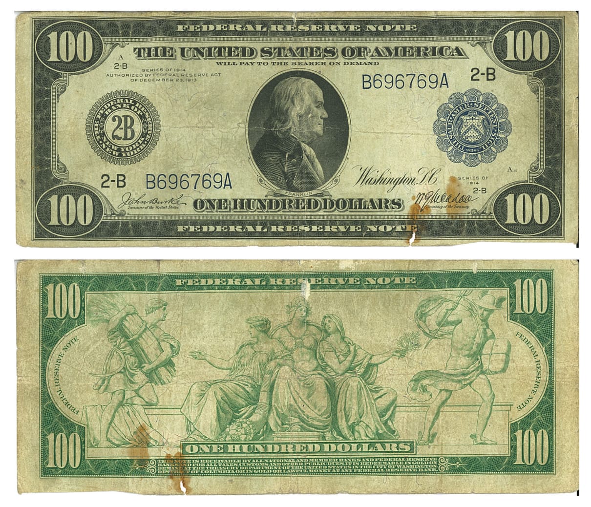 $100 1914 имеет не большие потери, потому не просто оценить.