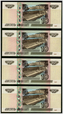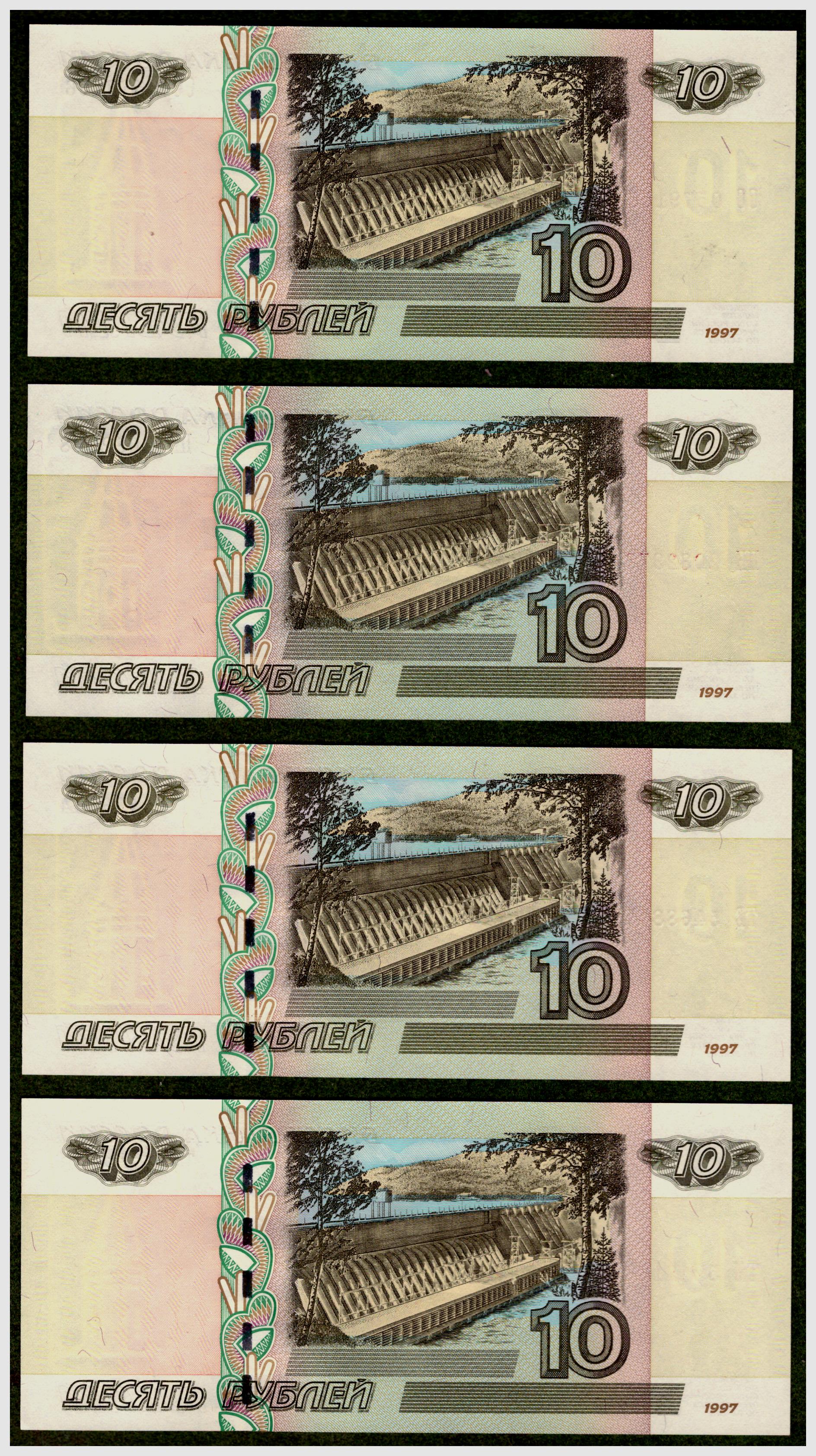 Тринадцать банкнот РФ 10 рублей 1997 (модификации 2004)