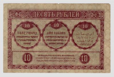 Описание лота: 10 рублей 1918 Закавказский комиссариат.