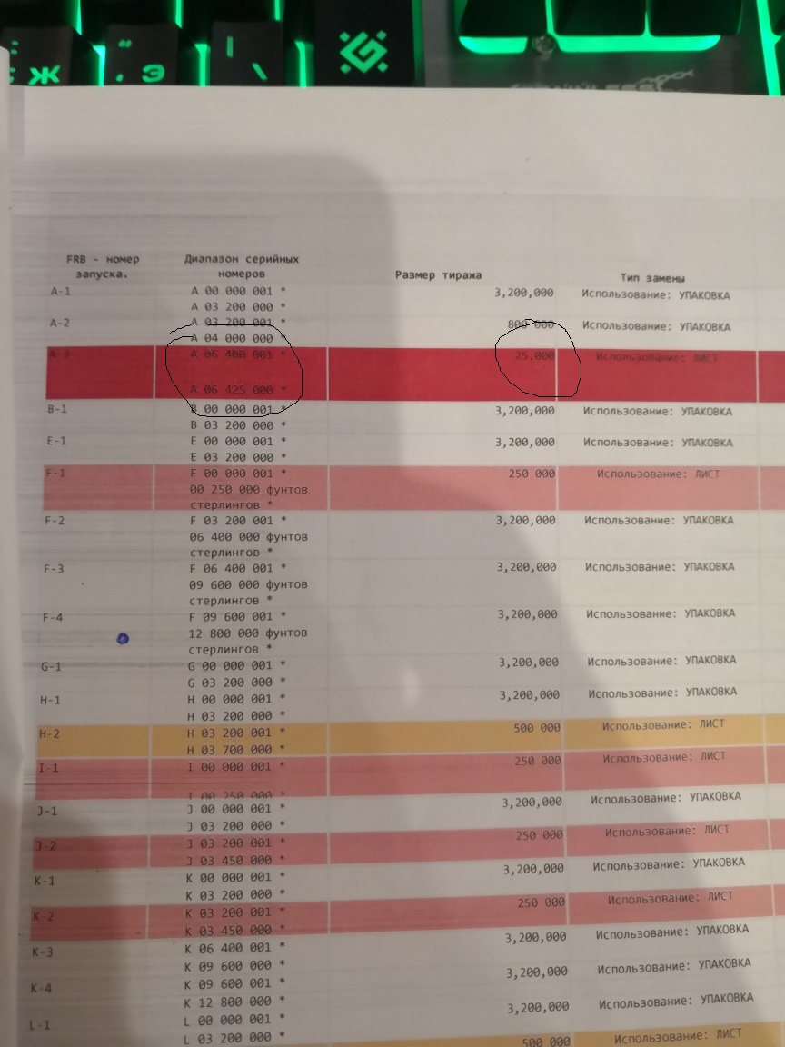 Согласно этой таблице тут изображен тирах 1 долллоровых замещенек, Получается запуск А-3 самый редкий так как тираж 25 000 всего и правильно я понимаю что номера банкнот будут от 0640001 до 06425000 ???