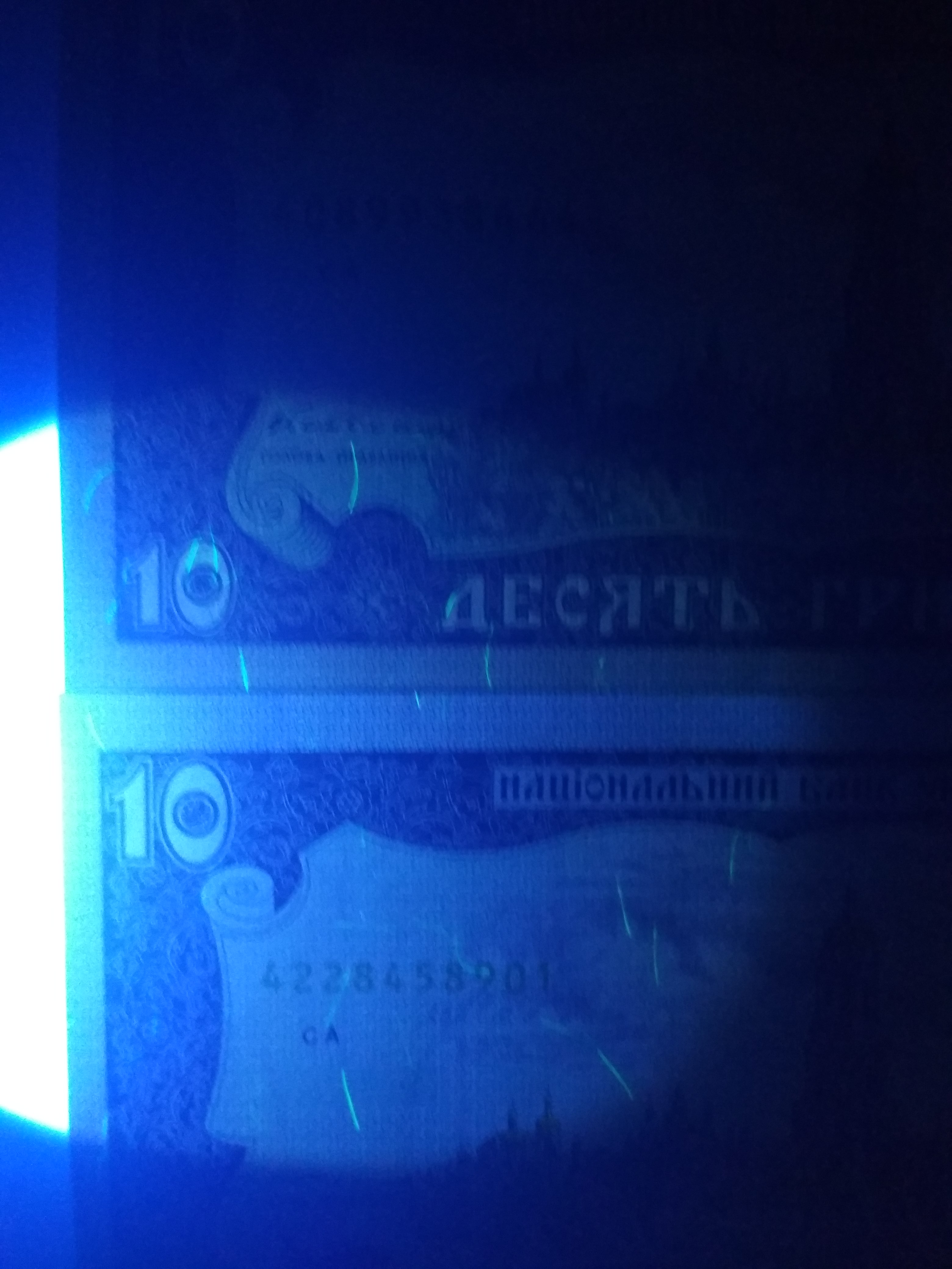 Фабрика банкнотной бумаги НБУ начала работу в конце 1996 - начале 1997 года. При этом вторая серия банкнот гривны с измененным дизайном датирована 1994-1995 годами и начала печататься еще до обмена купонов на гривны. Т.е. шансов, что разница в фотолюминисценции бумаги возникла в результате разных принтеров (Канада и Украина) очень мало...