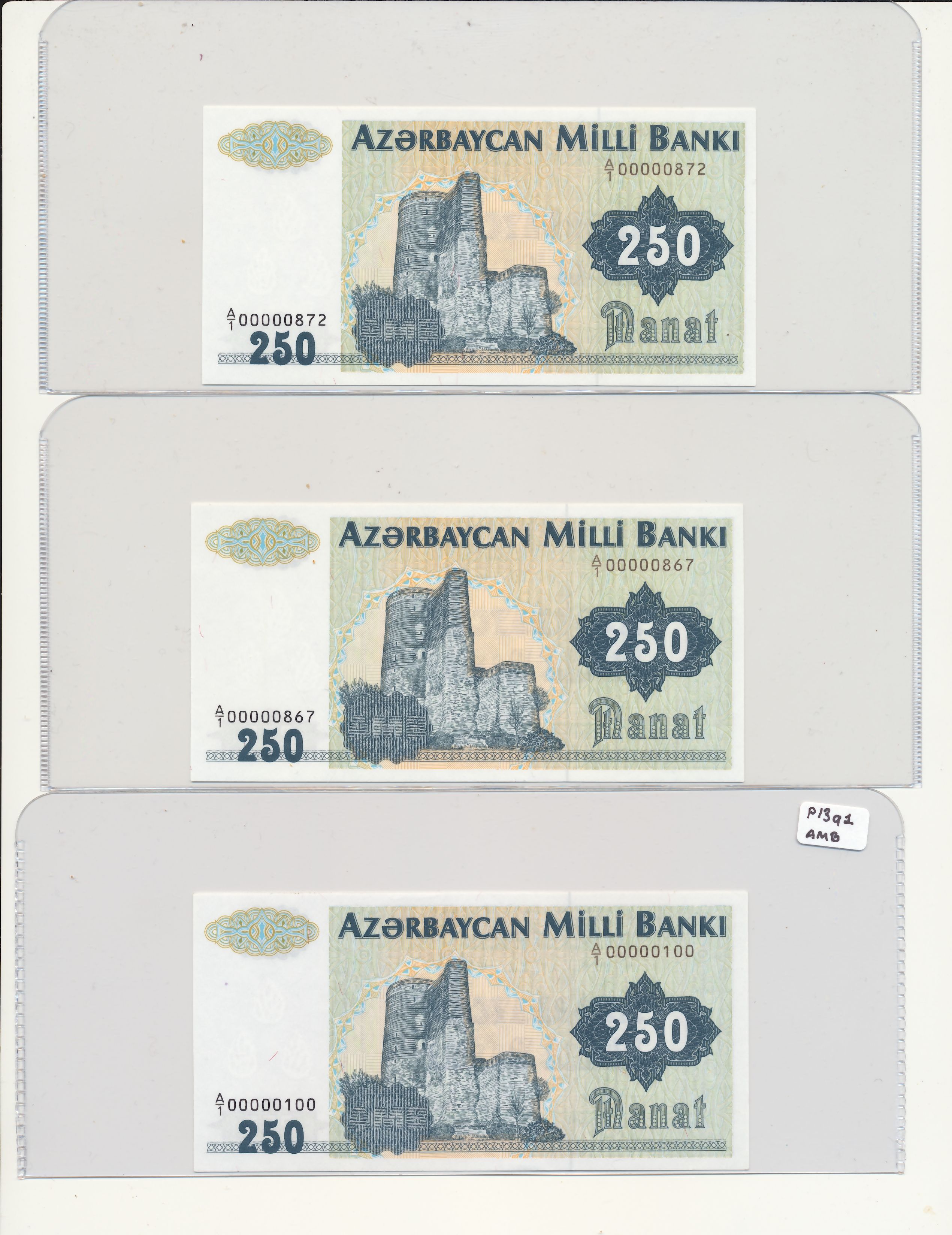 Азербайджан, дробные -оценка 250 manat- P13, 5 manat (P15)