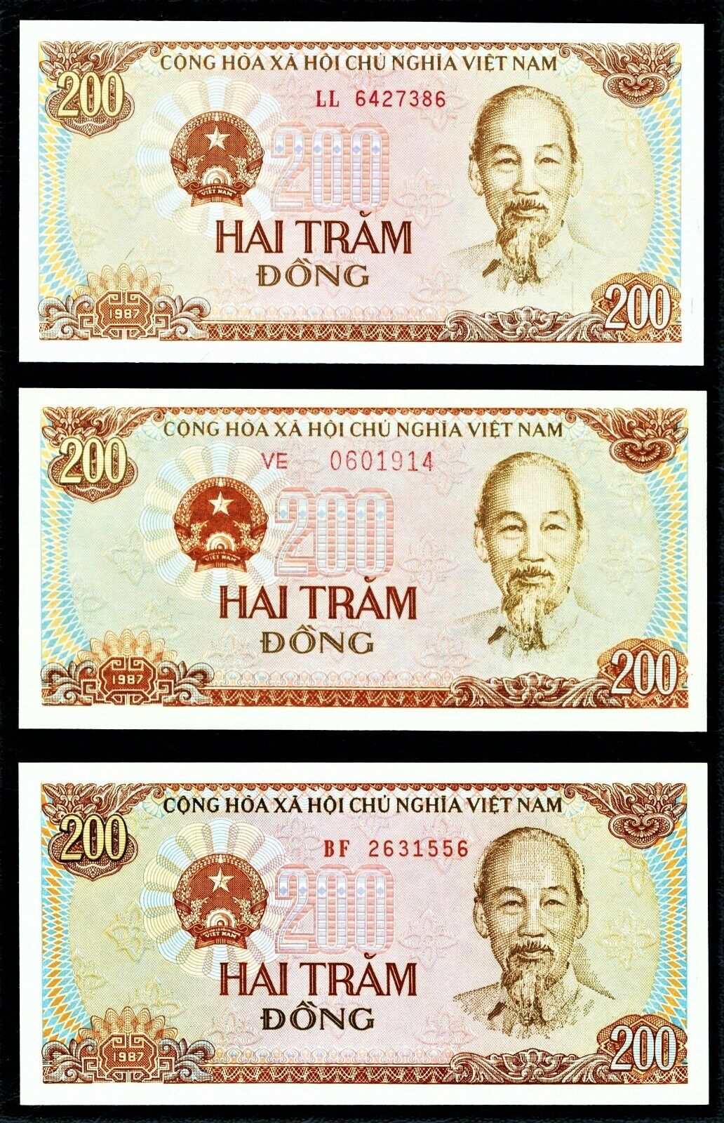 В кои-то веки заглянув в Пика, я, к своему удивлению, обнаружил там 3 типа нумерации на вьетнамских 200 донгах 1987 года: