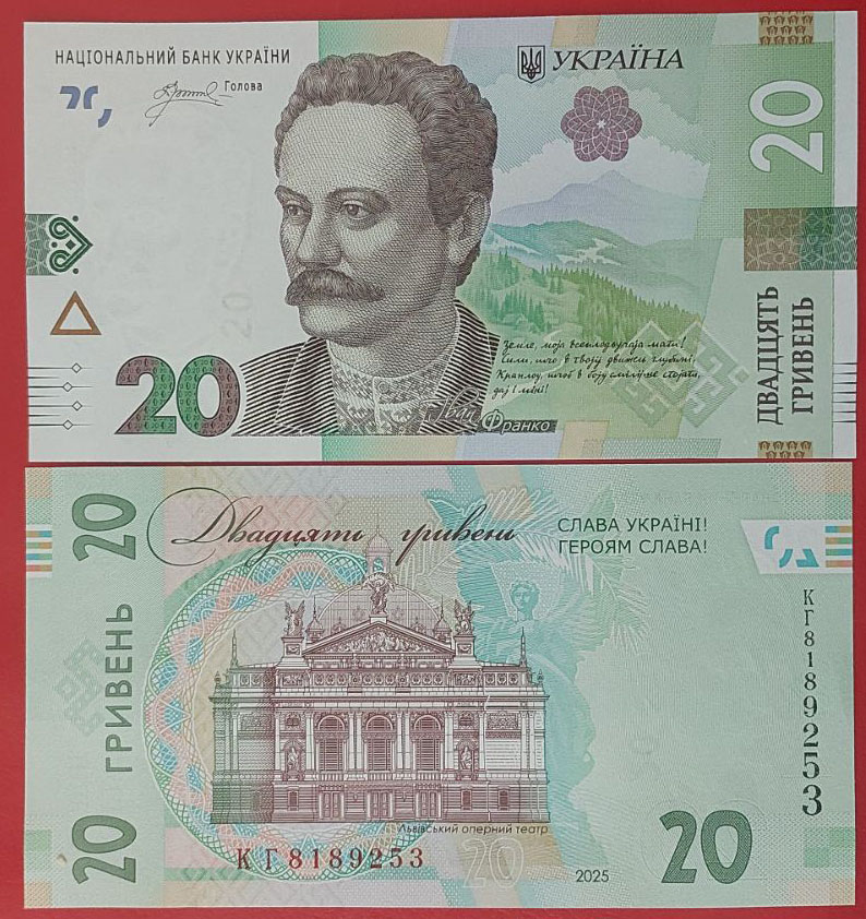 20 гривень 2025 СЛАВА УКРАЇНІ! ГЕРОЯМ СЛАВА!