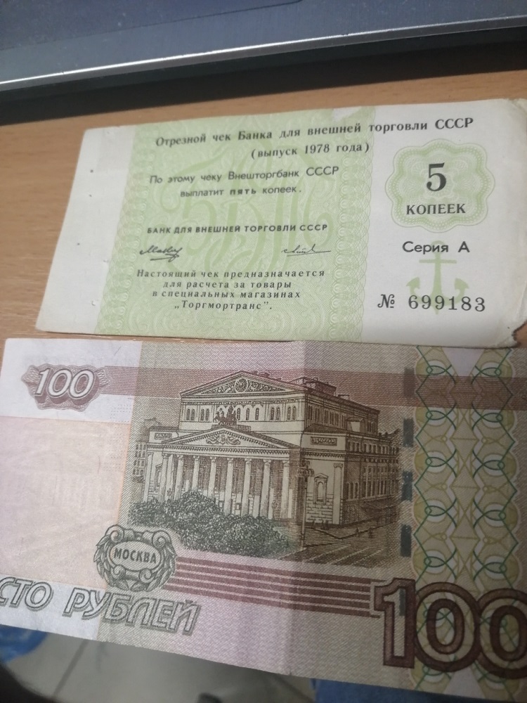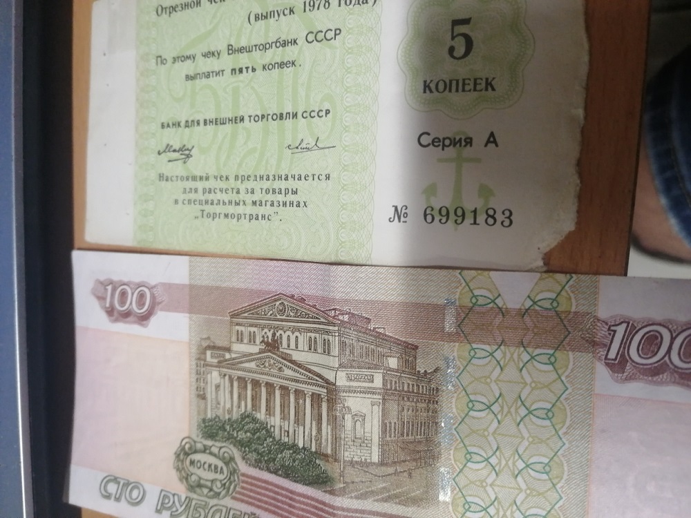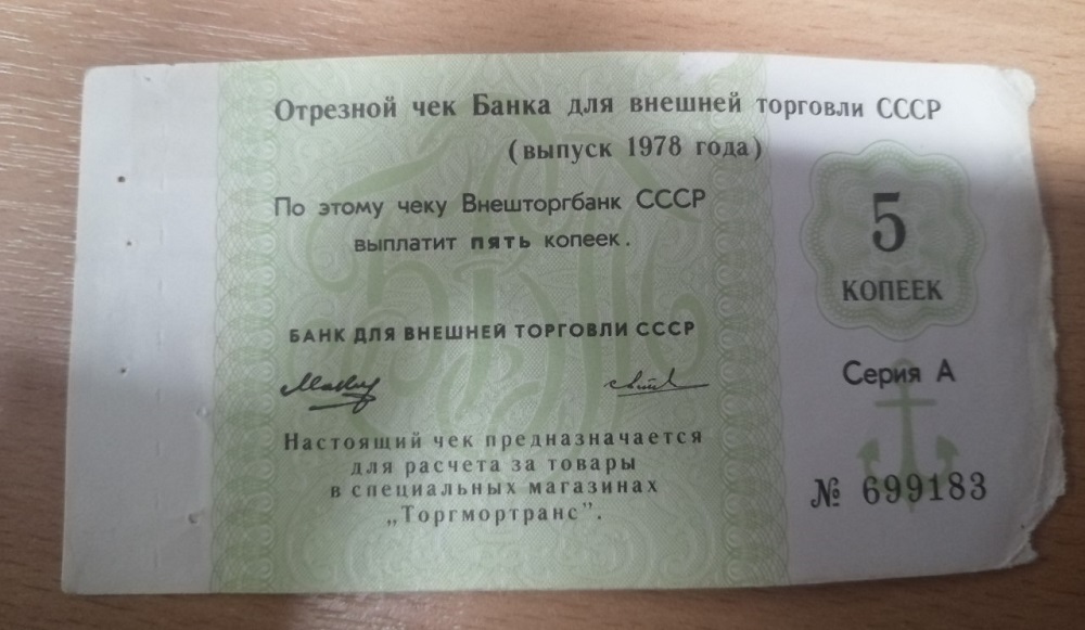 Чек внешторга 5 копеек зелёный