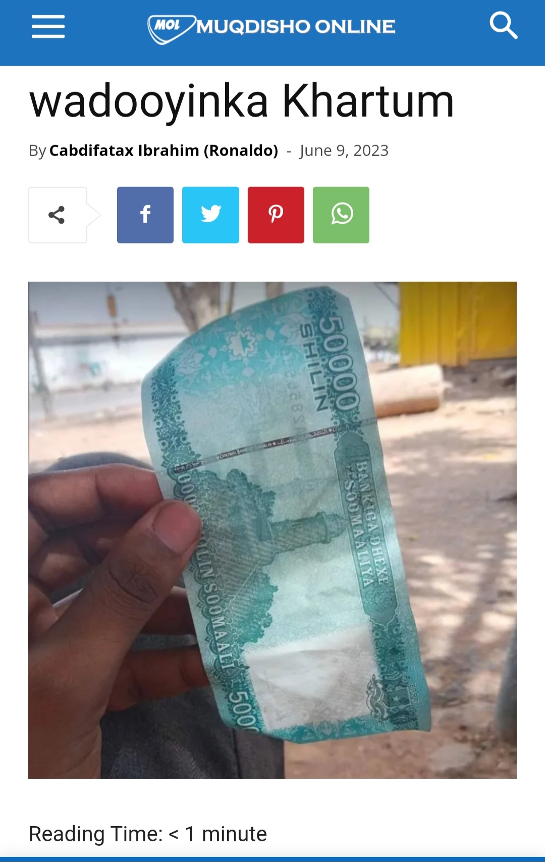Вот эти вот синенькие 50.000 тоже иногда мелькают, но никаких официальных заявлений я не нашел... И если они попали "в народ" в апреле 2023 напрямую из неких "хранилищ" на территории Судана, то почему опять же центробанк Сомали не рассказал всем, что это плохие, нелигитимные шиллинги..?