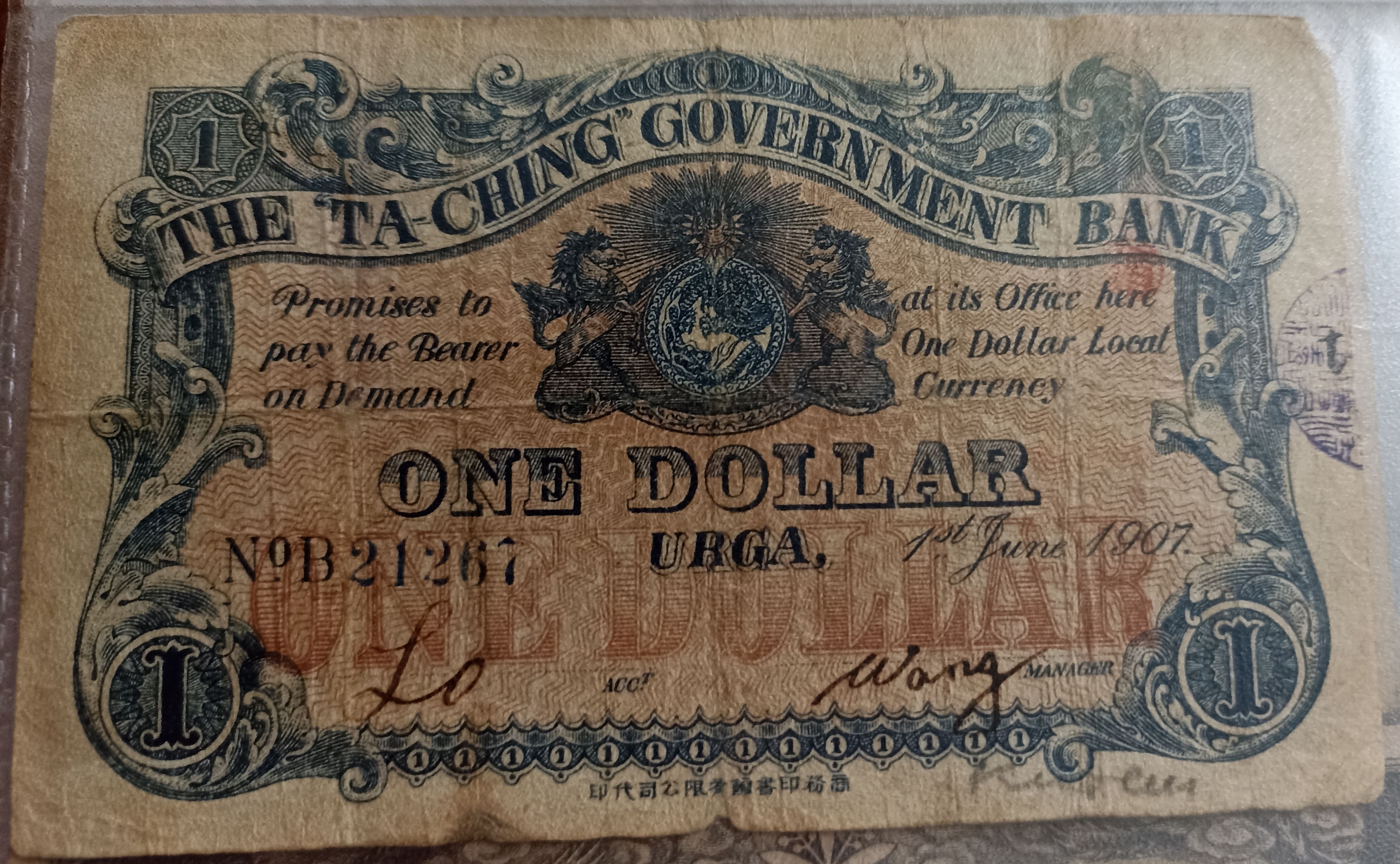 1 Dollar Ta-Ching Government Bank (Urga)