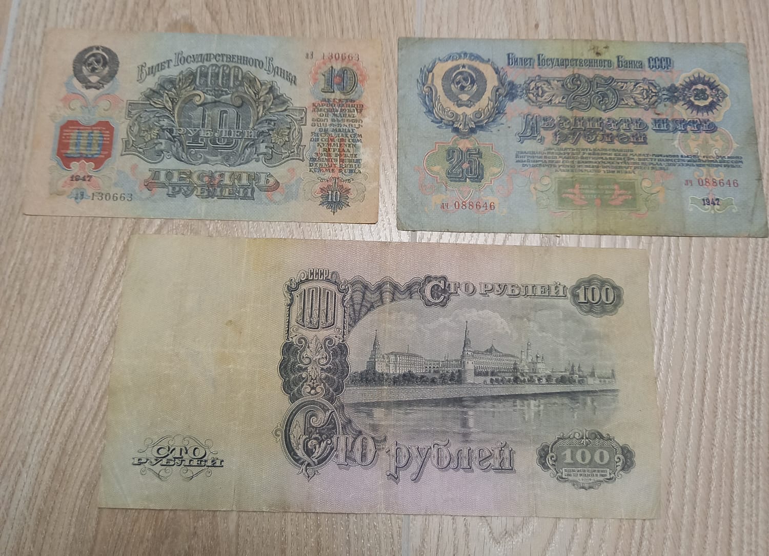 10, 25, 100 рублей 1947 года