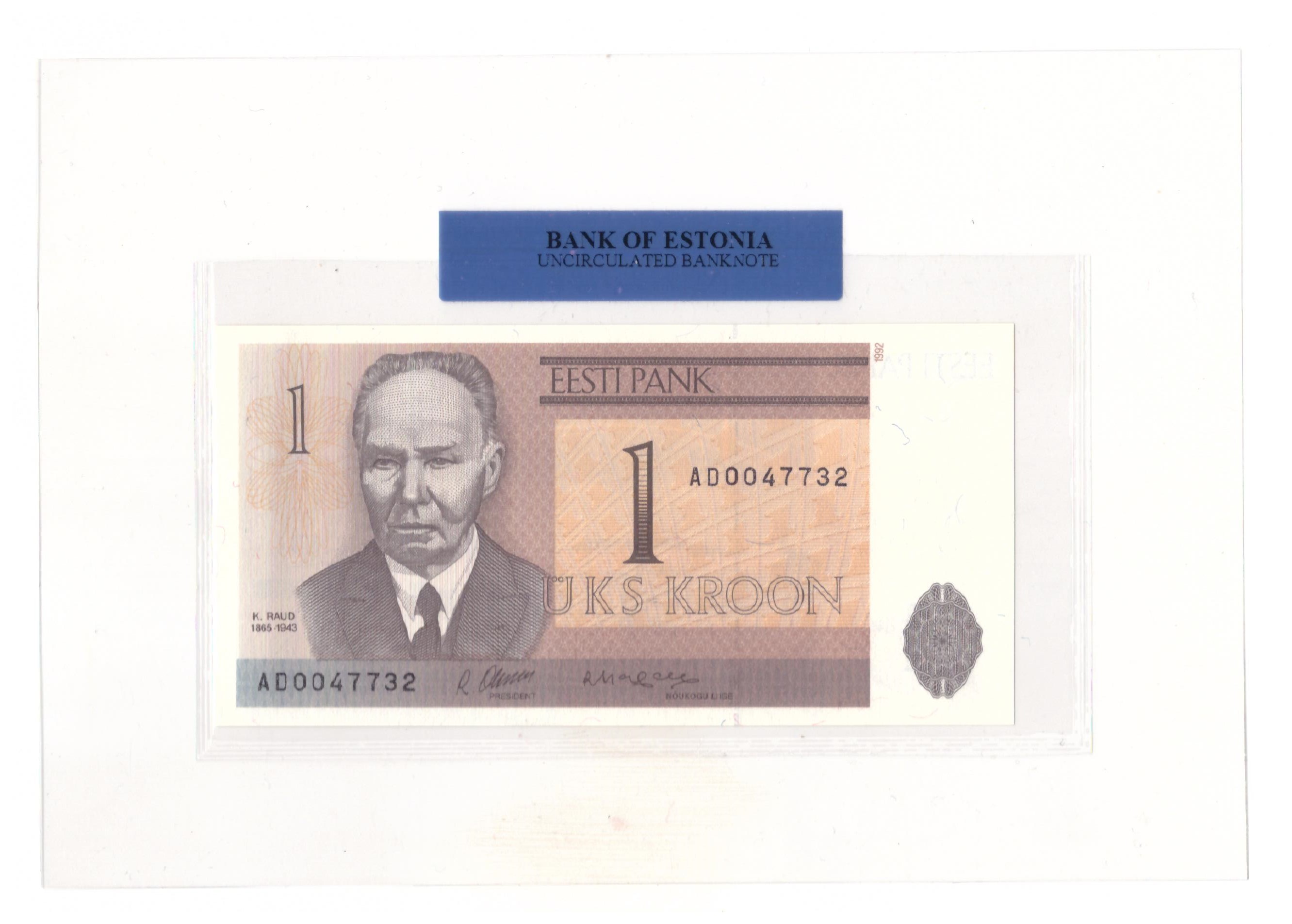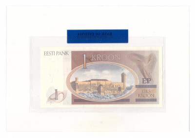 Банкнота в специальной упаковке (склабе) Банка Эстонии.