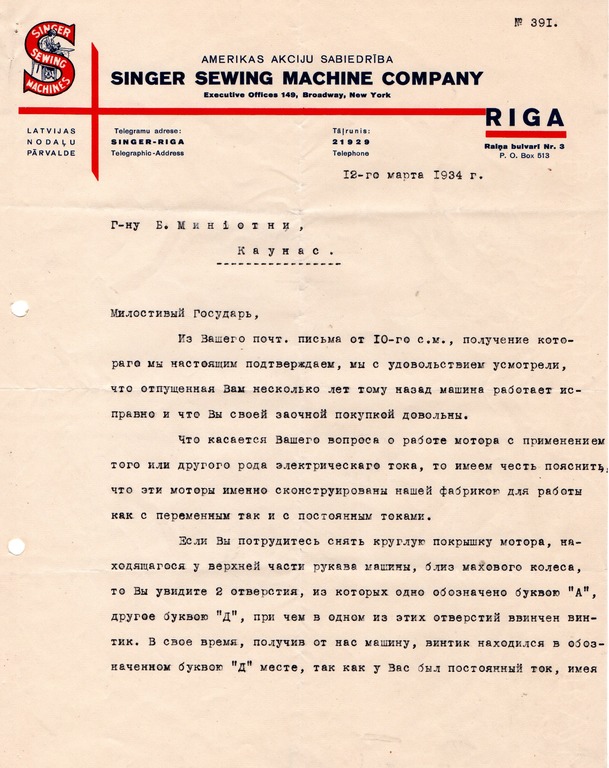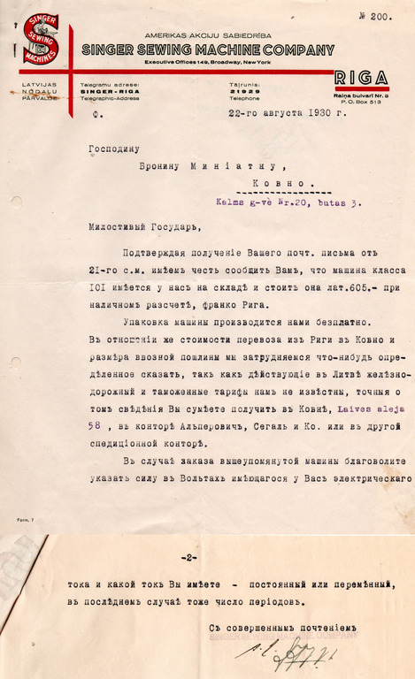 Приобрёл себе в коллекцию несколько писем 30тых годов, где речь идёт о продаже швейной машинки Зингер из Риги покупателю в Литве. Удивила цена. 600 латов.