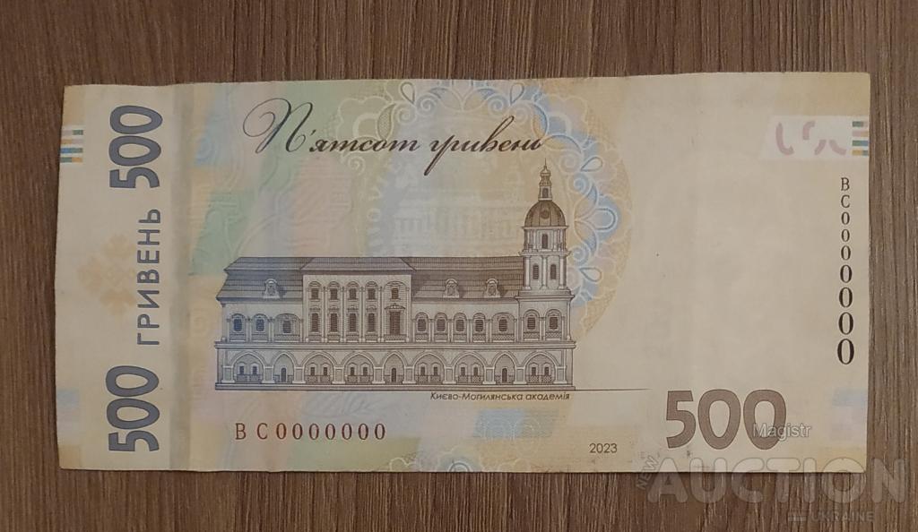 На нюаукционе продается 500 гривен 2023 год первая серия ВС0000000
