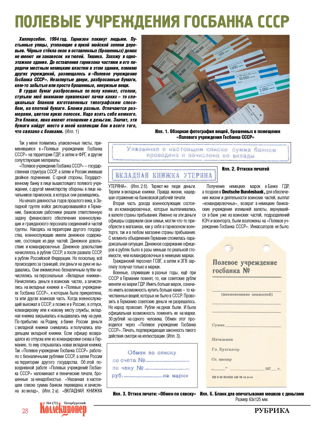 Статья "Полевые учреждения гос банка СССР" в которой описаны и показаны такие упаковочные листы опубликована в журнале "Петербургский коллекционер" №5(73) 2012 года.