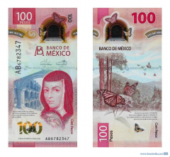 Банкнотой 2020 года стал денежный знак номиналом 100 песо образца 2020 года. На лицевой стороне купюры изображена сестра Хуана де ла Круз (Juana Indes de la Cruz), первая поэтесса и писательница Американского континента. На обороте - бабочки-монархи, обитающие в биосферном заповеднике. Отметим, что это первая вертикально ориентированная полимерная банкнота, выпущенная Банком Мексики (Banco de Mexico). И это первая победа мексиканских купюр в международном конкурсе IBNS.