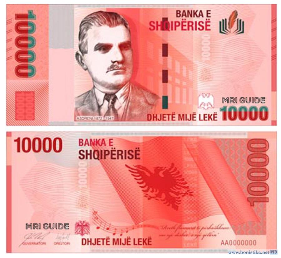 Напомним, что новая албанская банкнота будет выпущена летом нынешнего года. Эмиссионный институт не представил общественности дизайн денежного знака номиналом 10 000 леков.