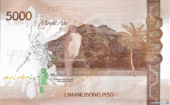 На обороте изображен филиппинский орёл Pithecophaga jefferyi, вид на гору Апо (Apo) и кокосовая пальма Cocos nucifera.