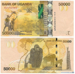 Банк Уганды (Bank of Uganda) выпустил в обращение тираж банкнот номиналом 50 000 угандийских шиллингов образца 2010 года с обновленными выходными данными. На лицевой стороне купюры воспроизведена новая дата эмиссии - 2021 год.
