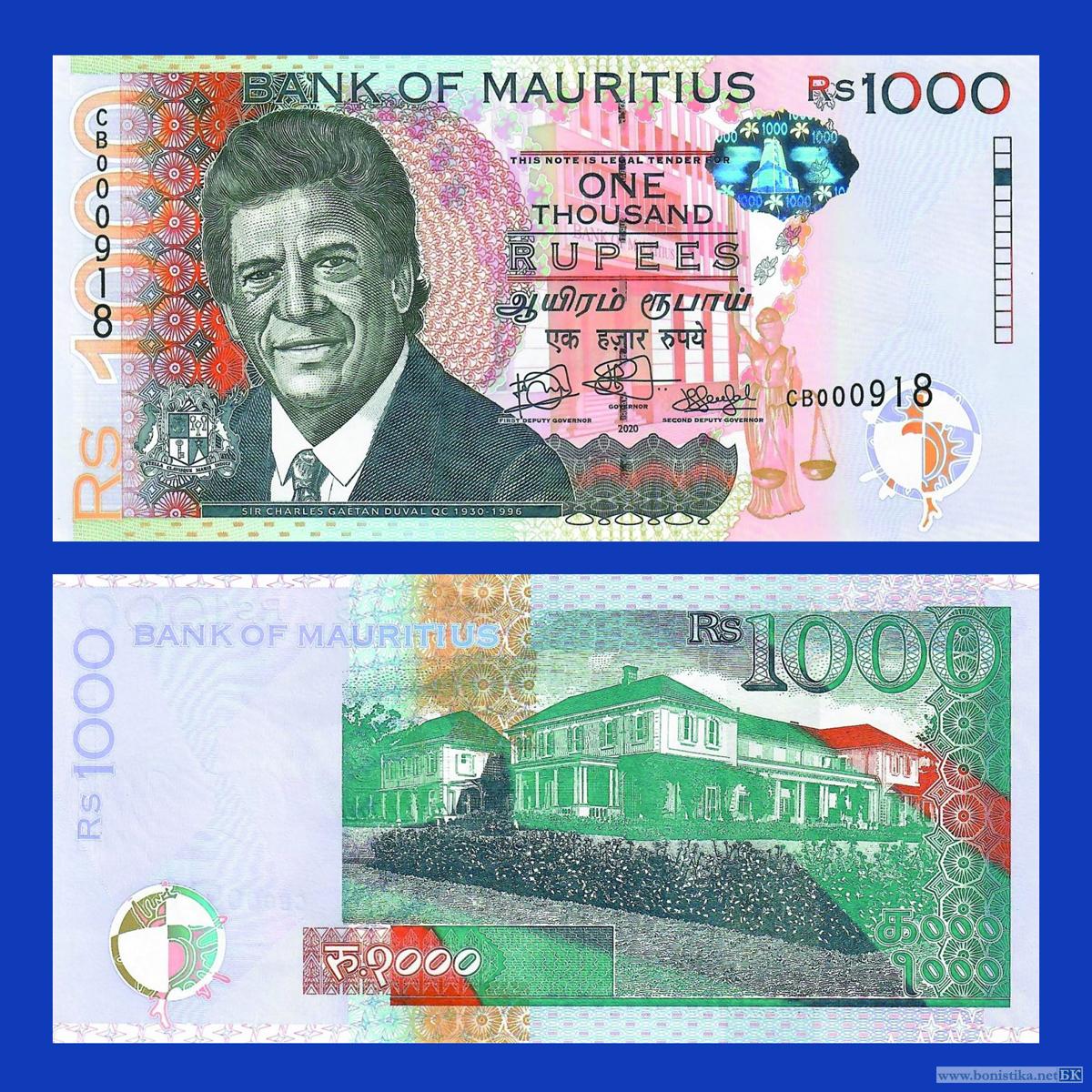 Банк Маврикия (Bank of Mauritius, Banque de Maurice) выпустил в обращение новый тираж банкнот номиналом 1 000 маврикийских рупий образца 2010 года с обновленными данными.