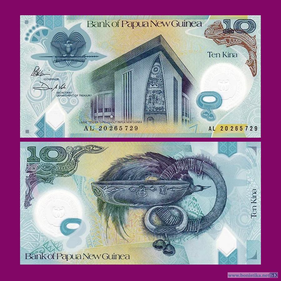 Банк Папуа - Новой Гвинеи (Bank of Papua New Guinea) выпустил в обращение тираж полимерных банкнот номиналом 10 кина образца 2008 года с обновленными выходными данными.