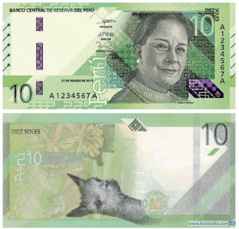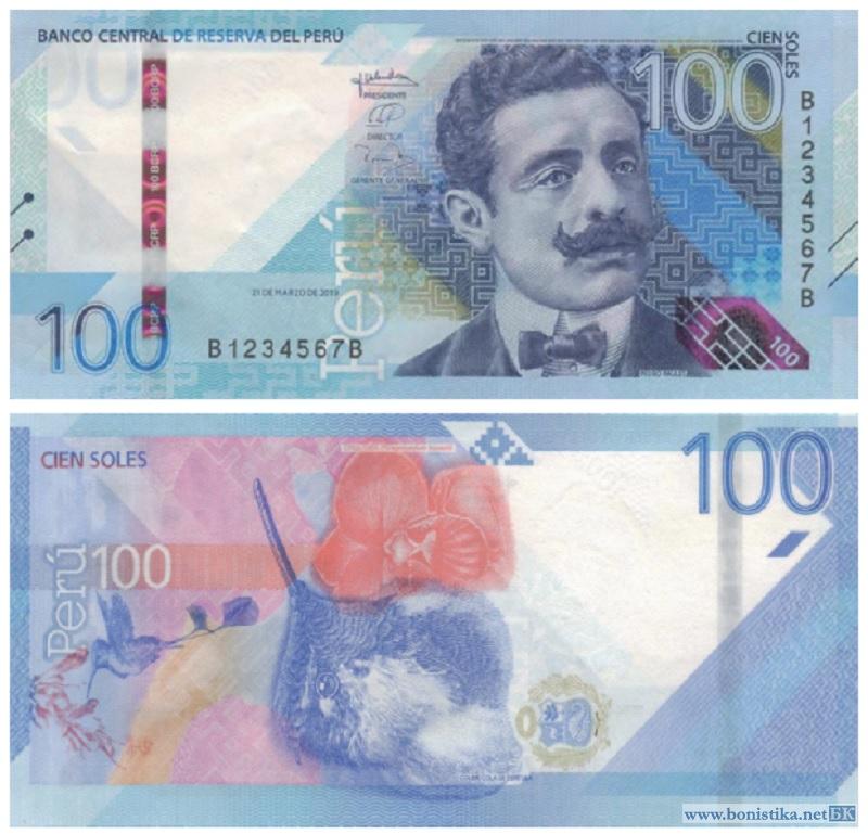 Центральный и резервный банк Перу (Banco Central de Reserva del Peru) объявил, что с 22 июля 2021 года начинает выпуск в обращение банкнот номиналом 10 и 100 солей образца 2019 года. Описание денежных знаков нового поколения размещено на сайте банка www.bcrp.gob.pe/