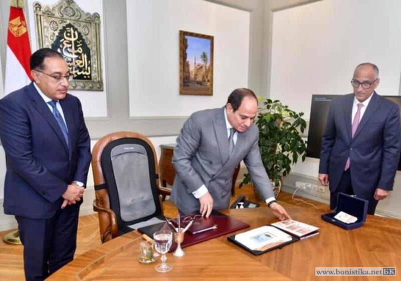 Центральный банк Египта (Central Bank of Egypt, البنك المركزي المصري) показал общественности первые образцы полимерных банкнот следующего поколения национальной валюты. Новые денежные знаки были представлены президенту страны Абдель Фаттаху Аль Сиси (Abdel Fattah al-Sisi, на фото в центре).