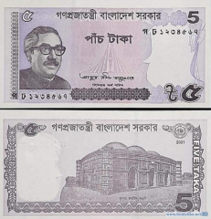 Правительство Народной республики Бангладеш (গণপ্রজাতন্ত্রী বাংলাদেশ, Peoples Republic of Bangladesh) выпускает в обращение банкноты номиналом 5 така. Напомним, что в последний раз купюры этого номинала эмитировались в 2018 году.