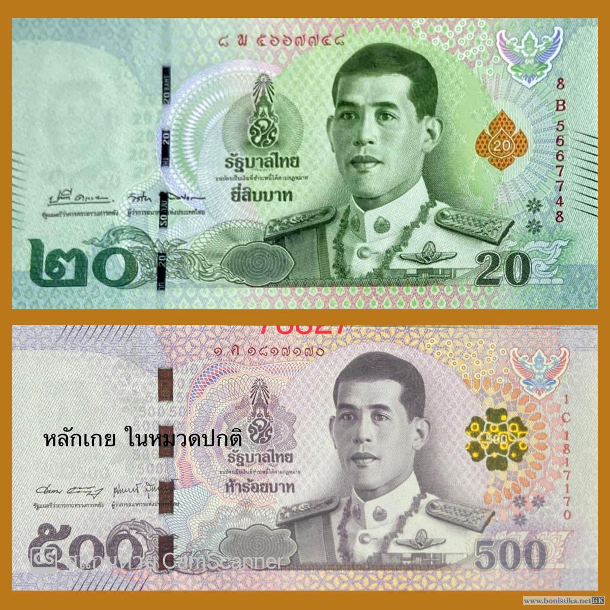 Банк Таиланда (ธนาคารแห่งประเทศไทย) выпустил в обращение новый тираж банкнот номиналом 20 и 500 батов серии 2018 года с портретом короля Маха Вачиралонгкона (Рама X).
