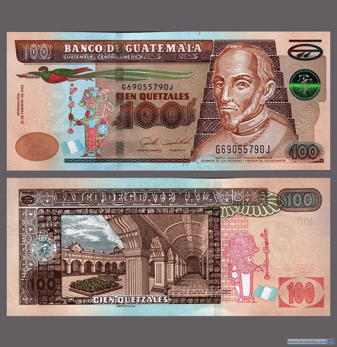 Банк Гватемалы (Banco de Guatemala) выпустил в обращение новый тираж банкнот номиналом 100 кетцалей образца 2020 года с обновленными выходными данными.