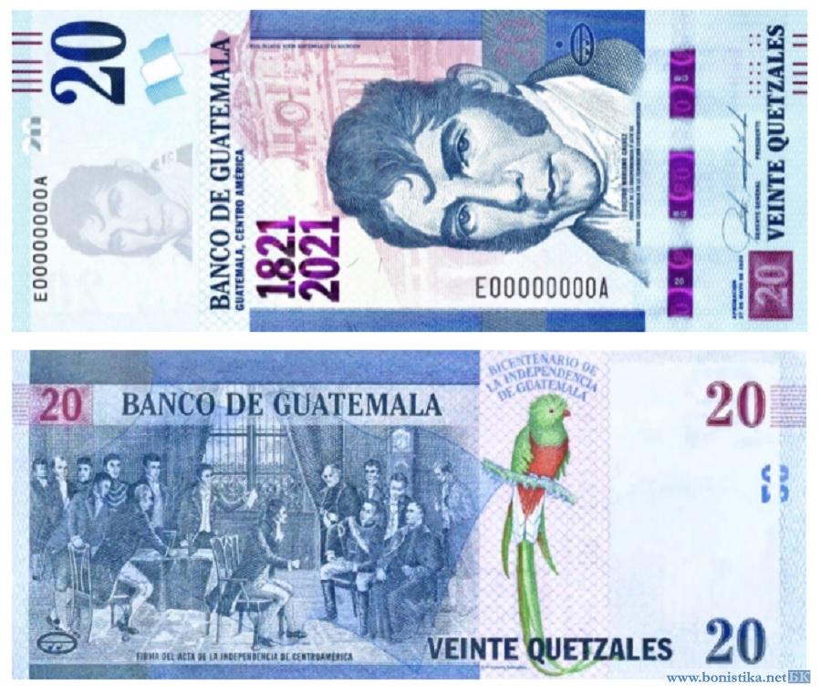Банк Гватемалы (Banco de Guatemala) приступил к эмиссии коммеморативных денежных знаков номиналом 20 кетцалей образца 2021 года. Информация об этом опубликована на официальной странице банка в социальной сети Фейсбук www.facebook.com/banguat/