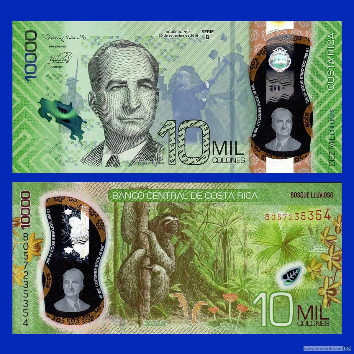 Центральный банк Коста-Рики (Banco Central de Costa Rica) приступил к эмиссии банкнот номиналом 10 000 колонов серии 2019 года, отпечатанных на полимерной основе. Первые купюры уже зафиксированы в наличном денежном обращении.