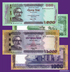 Банк Бангладеш (বাংলাদেশ ব্যাংক, Bangladesh Bank) выпустил в обращение новый тираж денежных знаков номиналом 500 и 1 000 така образца 2011 года.
