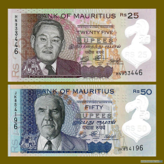Банк Маврикия (Bank of Mauritius) выпустил в обращение новый тираж банкнот номиналом 25 и 50 маврикийских рупий образца 2013 года.