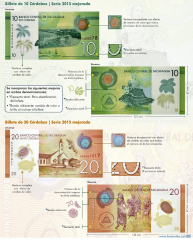 Центральный банк Никарагуа (Banco Central de Nicaragua, Nicaragua pûtka lalahka watla) выпускает в обращение обновленные денежные знаки номиналом 10 и 20 кордоба. Пресс-релиз опубликован на официальном сайте банка www.bcn.gob.ni