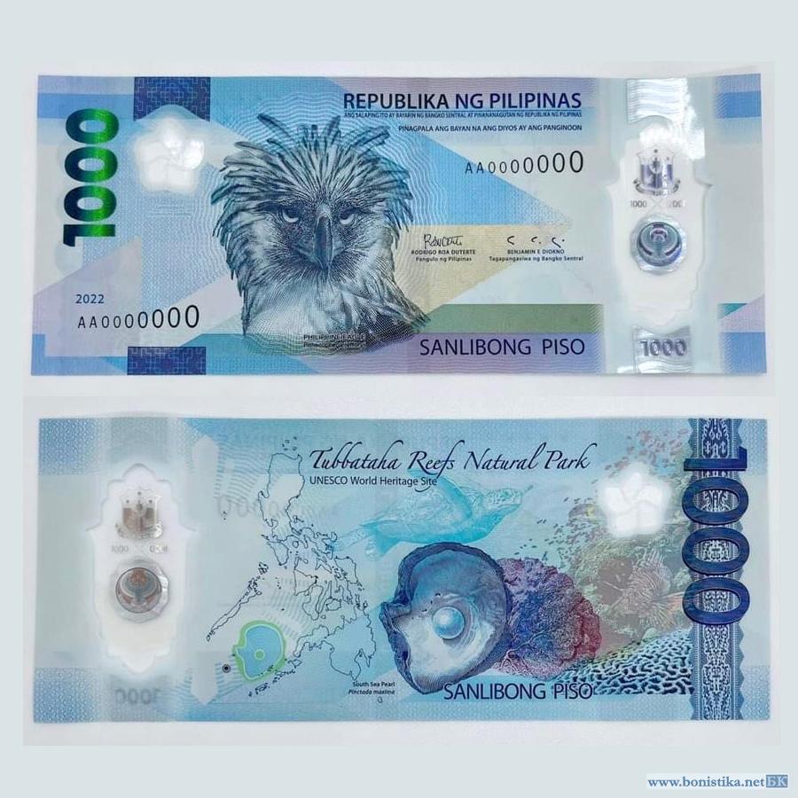 Центральный банк Филиппин (Bangko Sentral ng Pilipinas, BSP) представил общественности изображение нового денежного знака 1 000 филиппинских песо. Презентация была проведена он-лайн в групповом чате Viber, её провел губернатор банка Бенджамин Диокно (Benjamin Diokno).